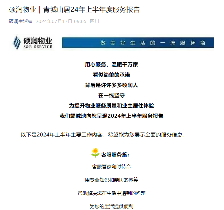 硕润物业|青城山居24年上半年度服务报告
